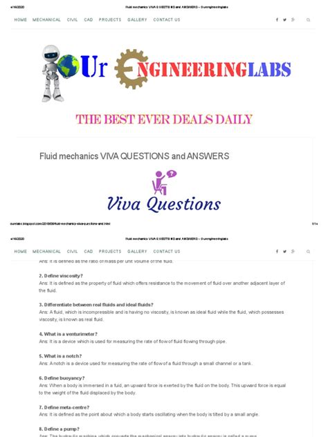 Download Fluid Mechanics Viva Questions Answers Doc