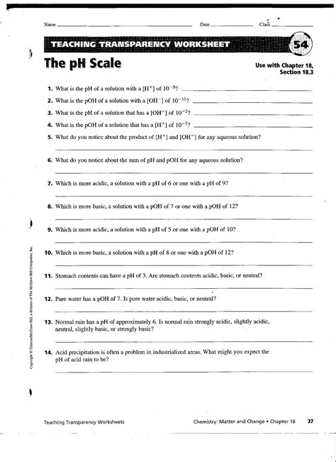 Download Teaching Transparency Worksheet The Ph Scale Answers Reader